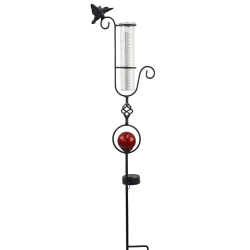 Rain Gauge Hummingbird W/Red Or Blue Orb Solar 8x3x35 (#7)