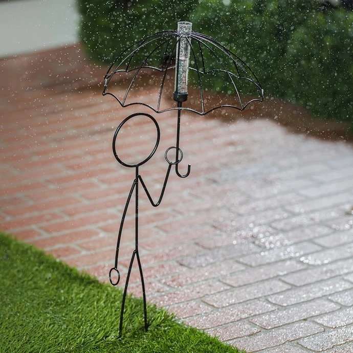 Rain Gauge Stake Little Man W/Umbrella 12.5×24 Metal